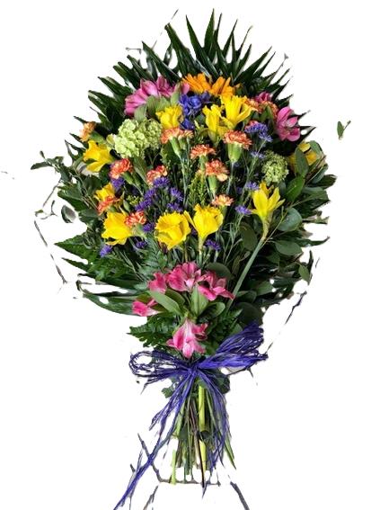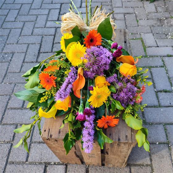 A beautiful selection of fresh seasonal flowers and foliage in a contrasting variety of bright colours!