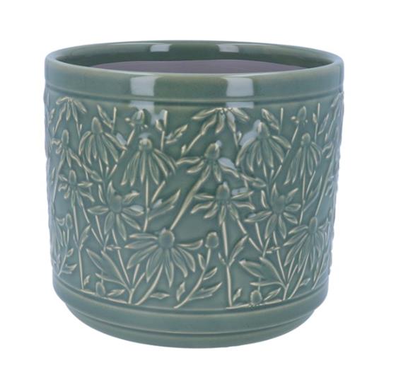 Gisela Graham 'Rudbeckia' Pot Cover Dark Sage Lg 1