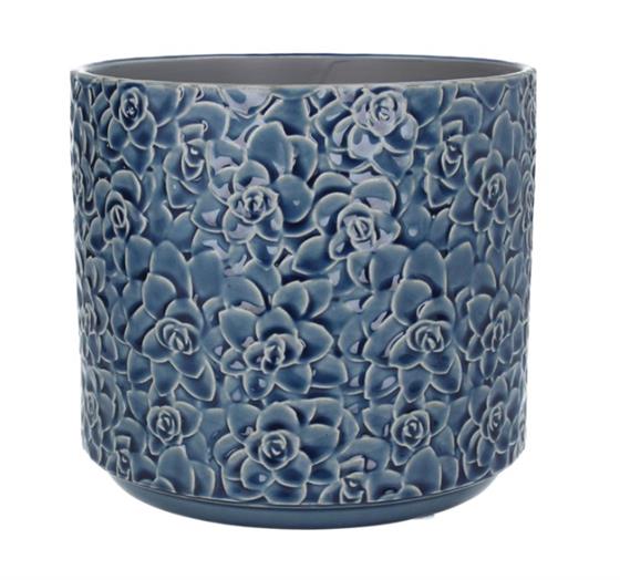 This ceramic plant pot cover (no holes in bottom) by Gisela Graham is a lovely navy in a succulents design, and is the perfect accessory for your plant and home!