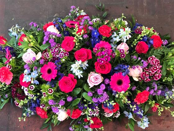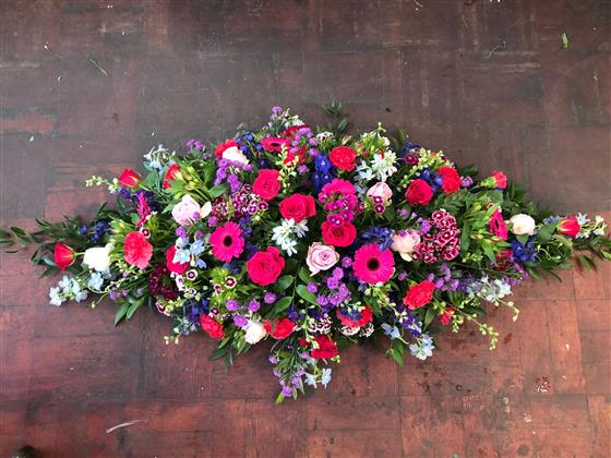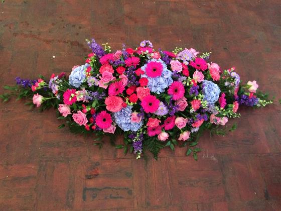 Vibrant Pink, Purple & Blue Casket Spray - Double Ended